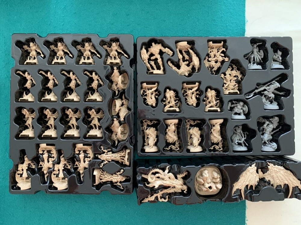 A jogabilidade é rápida e intuitiva. Você realiza três ações a cada turno: uma ação de manobra e duas ações adicionais de sua escolha. A manobra fornece pontos de movimento, conforme mostrado no canto superior direito da ficha de personagem, e como você sempre tem uma ação de manobra, pode se reposicionar para se colocar em uma posição mais vantajosa para o ataque. Além de manobrar, você pode usar uma ação para atacar um inimigo, rolando seus dados de ataque e utilizando as habilidades e armas de seu herói para causar o máximo de dano ou infligir condições prejudiciais aos seus inimigos, ou você pode usar a ação de explorar para interagir com uma peça de terreno 3D ou um token usando o aplicativo. Você também pode usar sua ação para realizar uma das ações mais cruciais em Legends of the Dark: a ação pronta, que permite que você vire sua folha de herói ou uma de suas cartas para o lado oposto, desbloqueando novas habilidades!