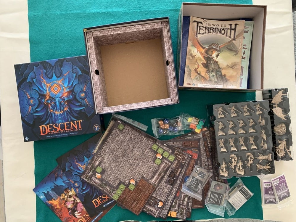Construa sua própria lenda junto com amigos enquanto você se aventura pelo reino de fantasia vibrante de Terrinoth no jogo cooperativo de tabuleiro Descent: Legends of the Dark. Desenvolvido por um aplicativo gratuito integrado, Descent: Legends of the Dark coloca você no papel de um herói em desenvolvimento com seu próprio estilo de jogo e habilidades. Junto com seus improváveis companheiros, você começará uma aventura inesperada - uma aventura contada nas dezesseis missões da campanha "Sangue e Chama". Ao longo de sua campanha, você enfrentará mortos-vivos à espreita nas brumas, bárbaros demoníacos perseguindo a selva e ameaças ainda mais terríveis. Com 46 pedaços de terreno 3D e quarenta miniaturas de heróis e monstros para atraí-lo para o jogo, sua maior aventura ainda está pela frente! Seus objetivos mudarão de missão para missão à medida que você segue a história geral da campanha.